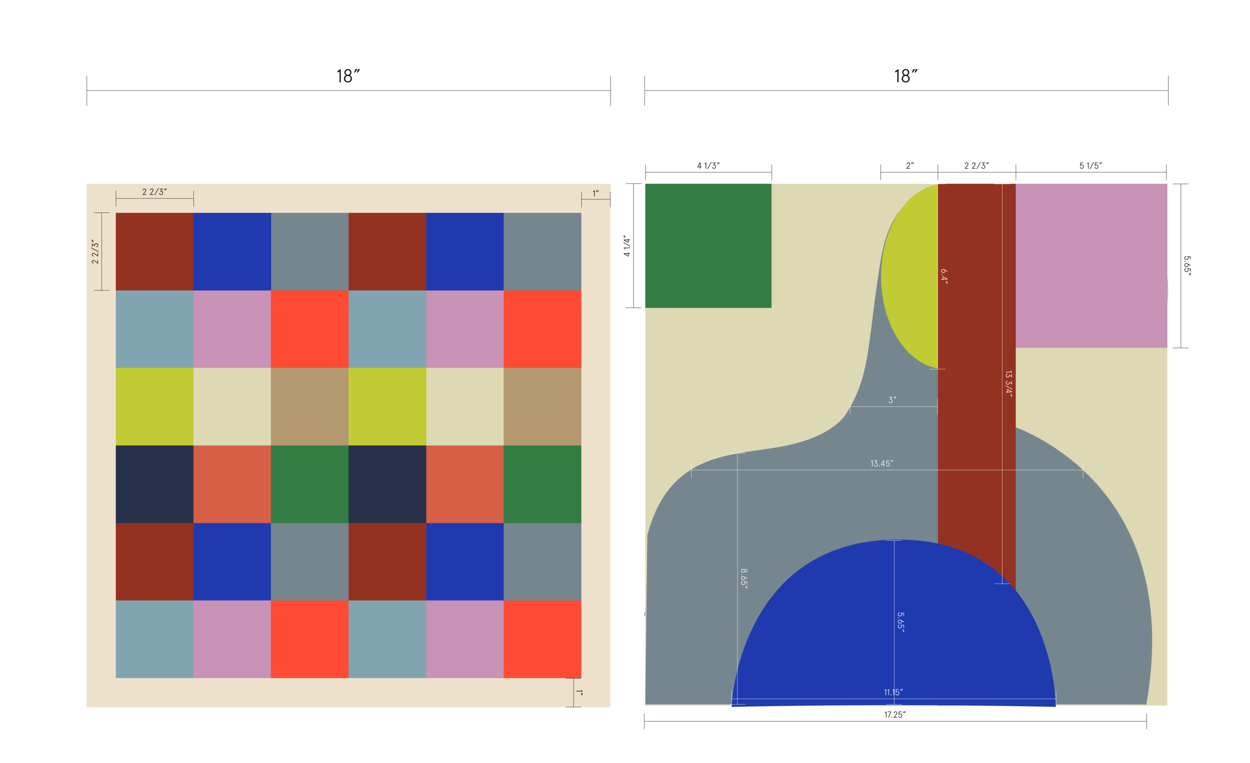 The design process involved developing digital prototypes, which I created in Figma using color matches from the fabric we sourced in downtown Los Angeles. We provided these prototypes to the sewers Abby hired so that they could understand how the pillows were to be constructed.